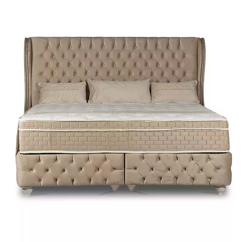Neben seinem luxuriösen Design bietet dieses Bett maximalen Komfort und Unterstützung für Ihren Körper. Die Matratze besteht aus hochwertigem Schaumstoff, der sich Ihrem Körper anpasst und ein unglaublich komfortables Erlebnis bietet. Die speziellen Stoffe, die bei der Herstellung der Matratze verwendet werden, verleihen ihr ein luxuriöses Gefühl, das Sie bei anderen Matratzen nicht finden können. Darüber hinaus hat es auch eine gesteppte Oberfläche, die maximalen Komfort und Unterstützung für Ihren Körper bietet.