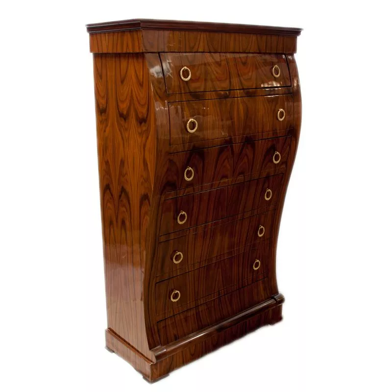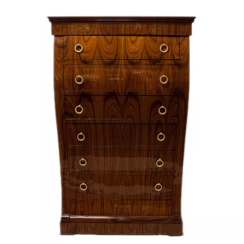 Exklusive und edele Kommode im Barockstil mit Nussbaum art . Handgefertigt aus massivem Pinienholz ist die Kommode robust und schwer. Da echtes Holz verarbeitet wird, kann die Farbe vom Foto leicht abweichen.