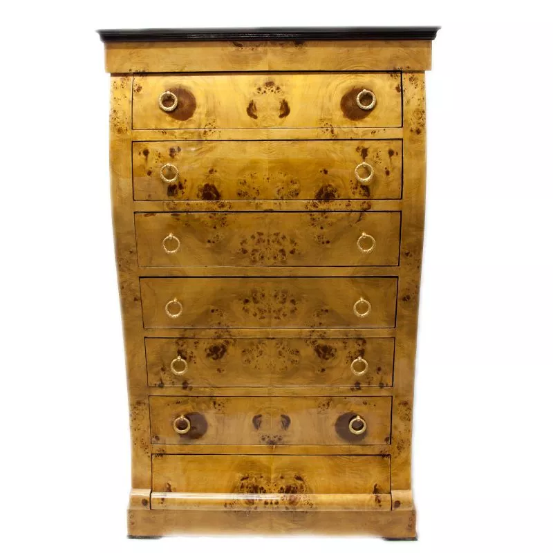 Exklusive und edele Kommode im Barockstil mit Wurzelholz . Handgefertigt aus massivem Pinienholz ist die Kommode robust und schwer. Da echtes Wurzelholz verarbeitet wird, kann die Farbe vom Foto leicht abweichen.