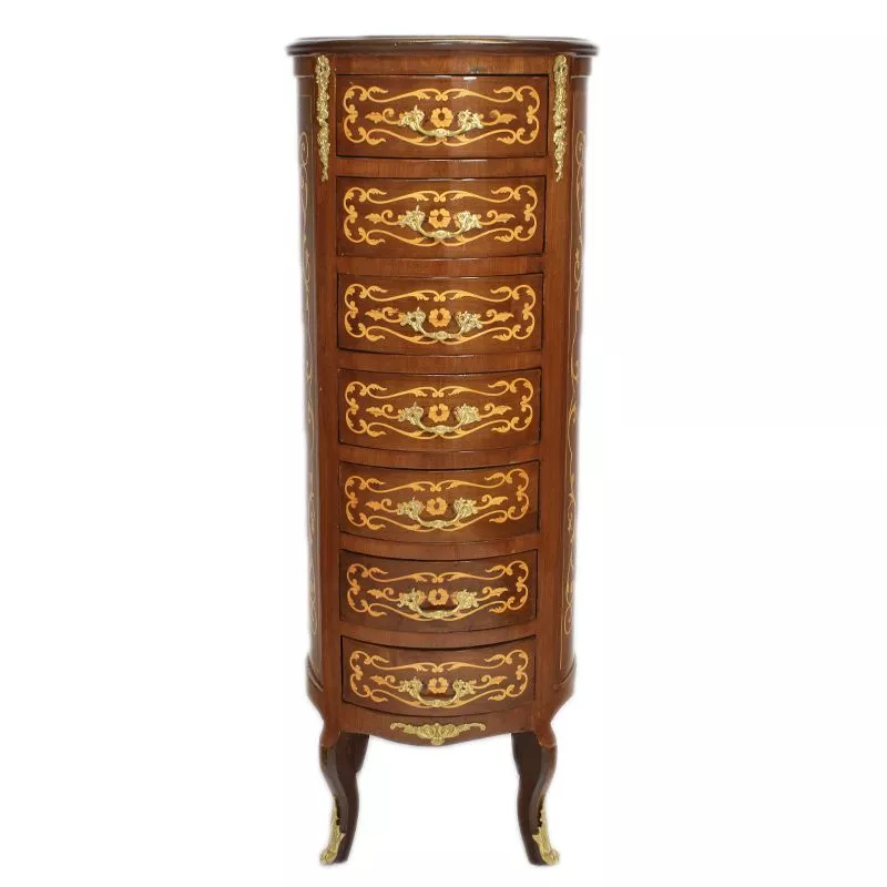 Exklusive und edele Kommode mit Wurzelholz im Barockstil mit 7 Schubladen . Handgefertigt aus massivem Pinienholz ist die Kommode robust und schwer. Da echtes Wurzelholz verarbeitet wird, kann die Farbe vom Foto leicht abweichen.