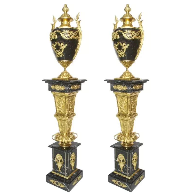 Barocksäulen 2er set Chateau schwarz, preis per paar mit Vase Echten Bronze. Marmor schwarz