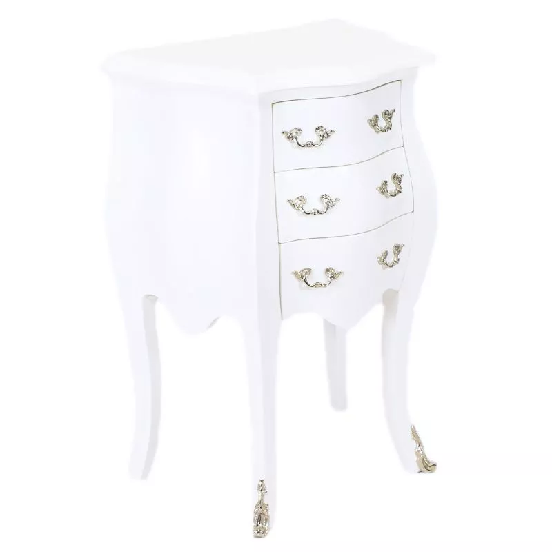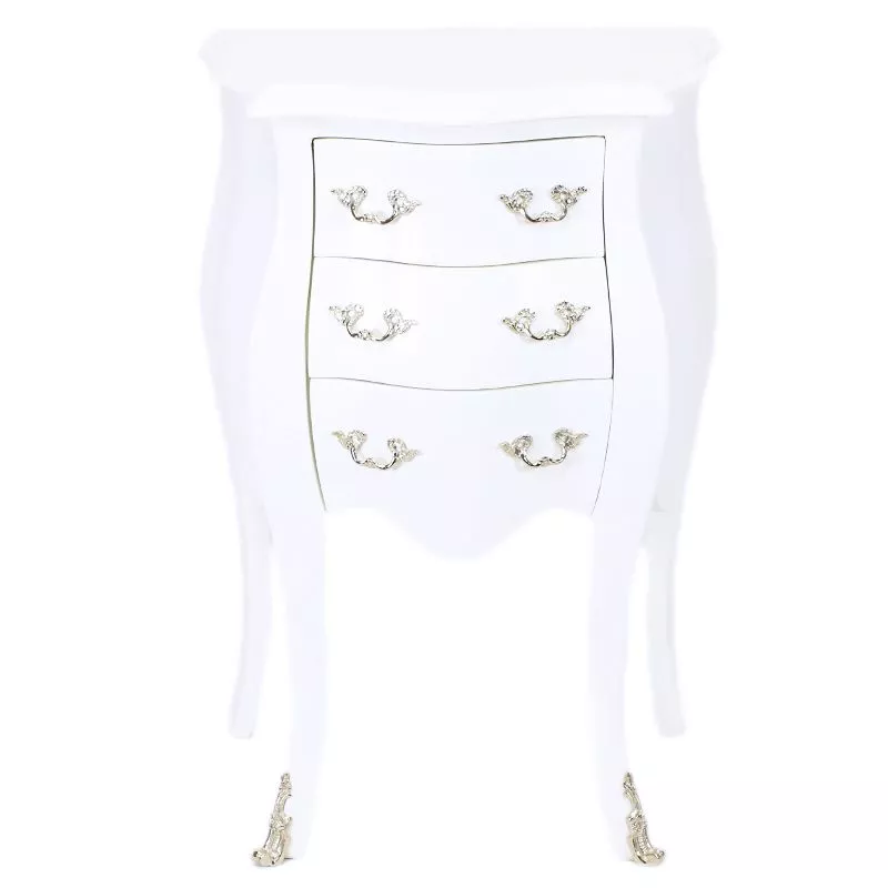 Exklusive und edele Kommode im Barockstil mit weisslack berzogen. Handgefertigt aus massivem Pinienholz ist die Kommode robust und schwer. Die Kommode ist Hochglanz lackiert.