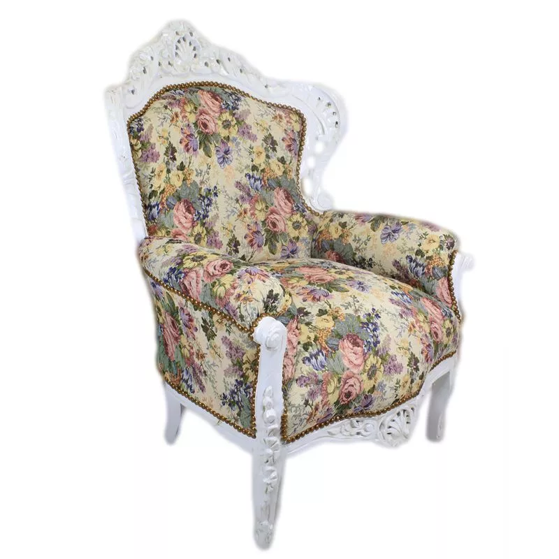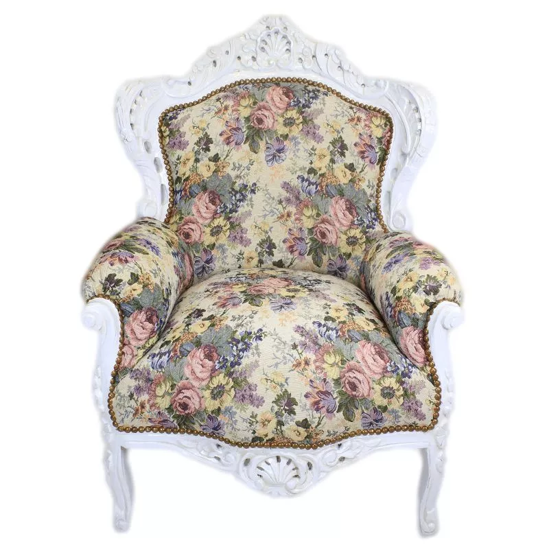 Dieser pompse Luxus Barocksessel mit Cremefarbenden Rahmen und hochwertigem Polster aus Baumwollstoff mit Mustert, wurde in echter Handarbeit aus massivem Buchenholz gefertigt und ist damit sehr stabil und schwer. Ob als Sessel im Esszimmer oder alleinstehend, verleiht er jedem Ambiente einen einzigartigen, luxurisen Stil. Der Sessel ist auch in anderen Farben erhltlich.