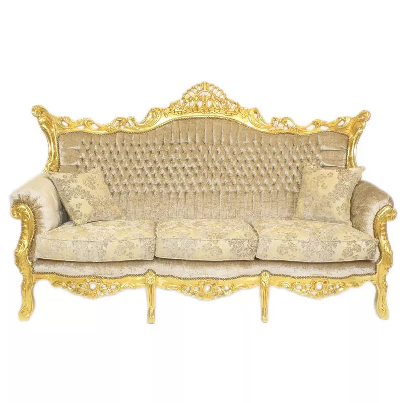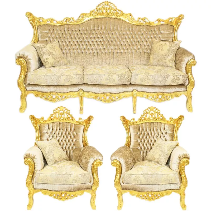 Material: massives Buchenholz,Samtstoff Barok set deluxeset royal lyse goud-premium beige 1x Sofa: Masse ca. breite=200cm tiefe=80cm hhe=130cm Sitzhhe=50cm 2x Sessel: Masse ca. breite=90cm Diepte=70cm hhe=120cm Sitzhhe=50cm