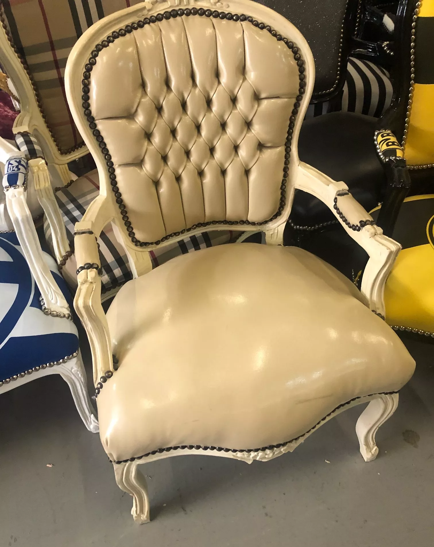 Dieser Luxus Barockstuhl mit creme Rahmen und hochwertigem Polster aus Stoff Farbe creme ,wurde in echter Handarbeit aus massivem Buchenholz gefertigt und ist damit sehr stabil und schwer. Ob als Stuhl im Esszimmer oder alleinstehend, verleiht er jedem Ambiente einen einzigartigen, luxurisen Stil.