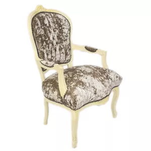 Dieser klassische Barockstuhl mit cremefarbenem Rahmen und hochwertigem Polster aus gemustertem Stoff ,wurde in echter Handarbeit aus massivem Buchenholz gefertigt und ist damit sehr stabil und schwer. Ob als Stuhl im Esszimmer oder alleinstehend, verleiht er jedem Ambiente einen einzigartigen, eleganten Stil.
