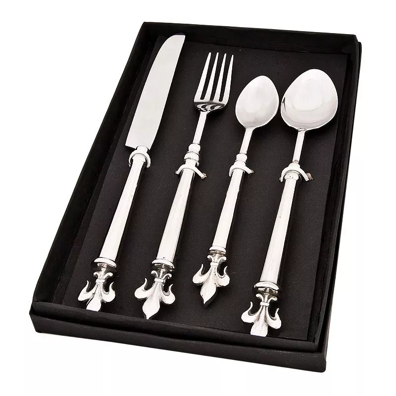 Das handgefertigte Besteckset 25 x 2,5 x 2,5 cm Lily von By Kohler ist eine atemberaubende Besteckkollektion, die klassisches Design mit moderner Technologie verbindet. Dieses Set enthält vier Teile: ein Messer, eine Gabel, einen Löffel und löffelähnliche Servierutensilien. Das einzigartige Griffdesign dieses Bestecksets erleichtert das Greifen und sorgt für ein angenehmes Gefühl bei der Verwendung.