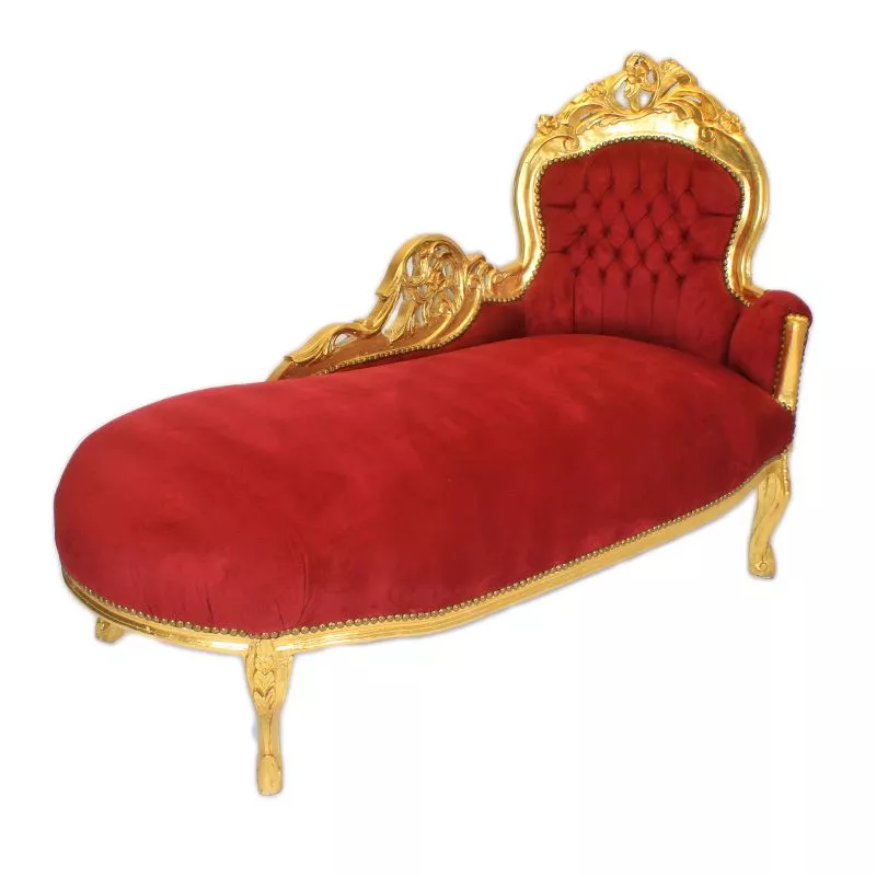 LuxurisesChaiselong mit gold Rahmen und einem hochwertigen, bequemen Polster in Stoff bordeauxe. Handarbeit aus massiven, robusten Buchenholz im typischen Barockstil. Mae: Hhe ca. 160 cm, Breite ca.70 cm, hhe 100 ca. Sitzhhe 55 cm