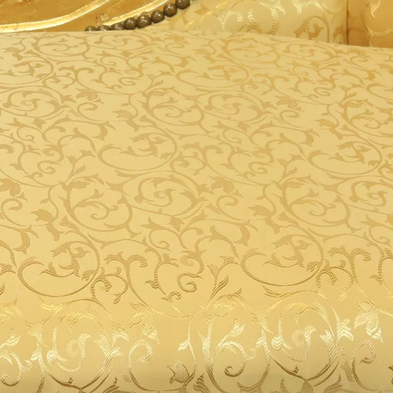 LuxurisesChaiselong mit gold Rahmen und einem hochwertigen, bequemen Polster in Stoff gold mit Muster. Handarbeit aus massiven, robusten Buchenholz im typischen Barockstil. Mae: Hhe ca. 160 cm, Breite ca.70 cm, hhe 100 ca. Sitzhhe 55 cm
