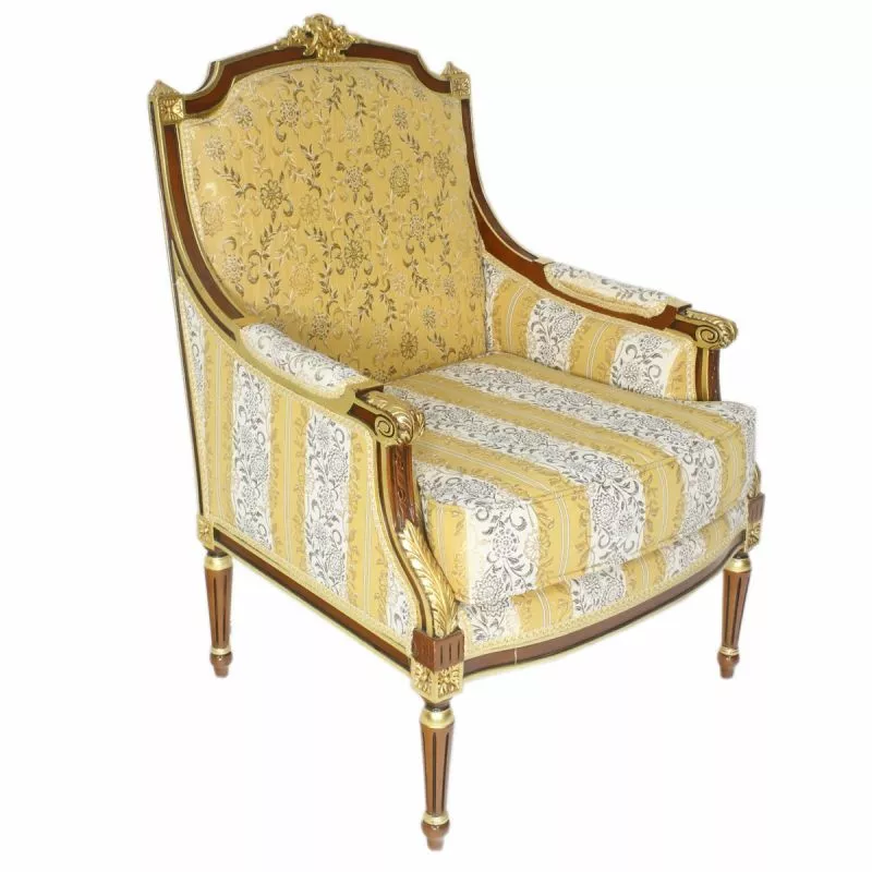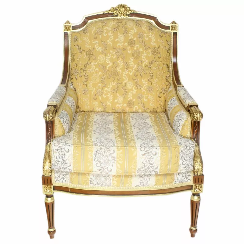Fauteuil Empire Sint-PetersburgEdler Barocksessel mit massiven, robusten Buchenholzrahmen im typischen Barockstil. Hochwertiges und bequemes Polster aus Baumwollstoff mit Muster In Handarbeit hergestellt. Der Sessel ist auch in anderen Rahmenfarben und Bezugsfarben erhältlich.