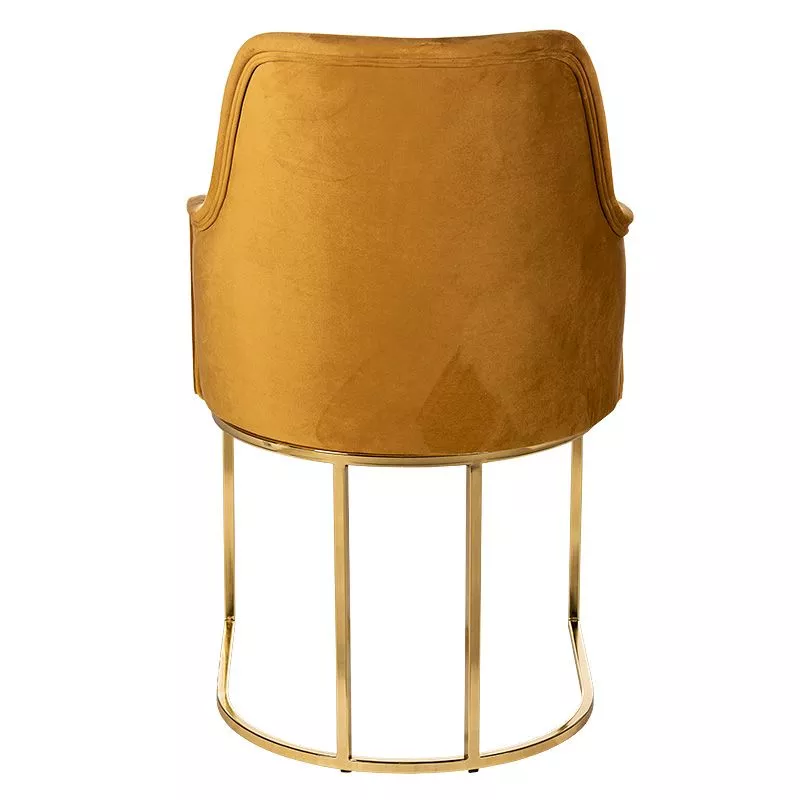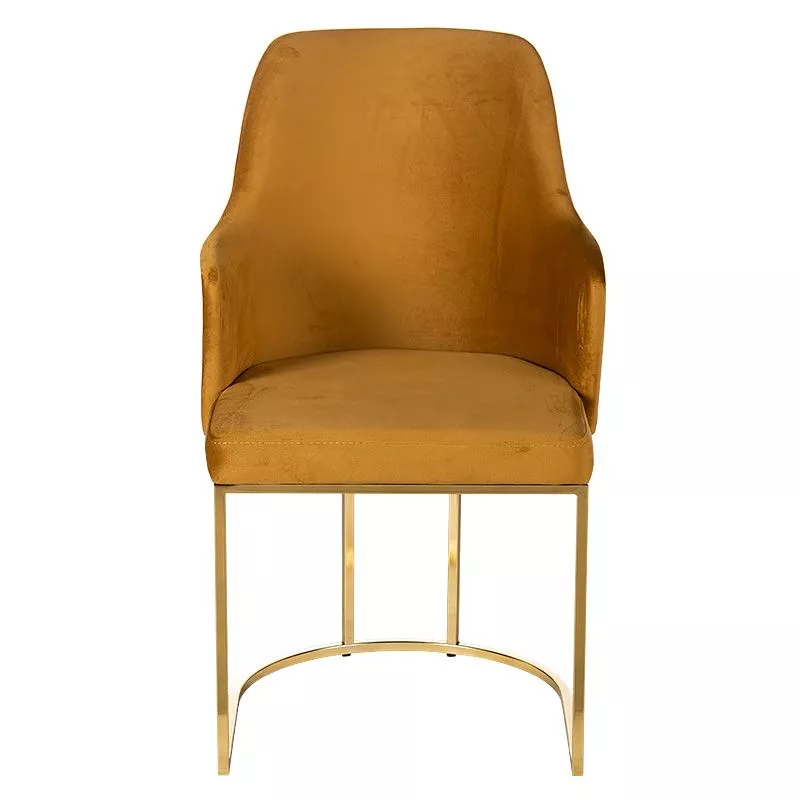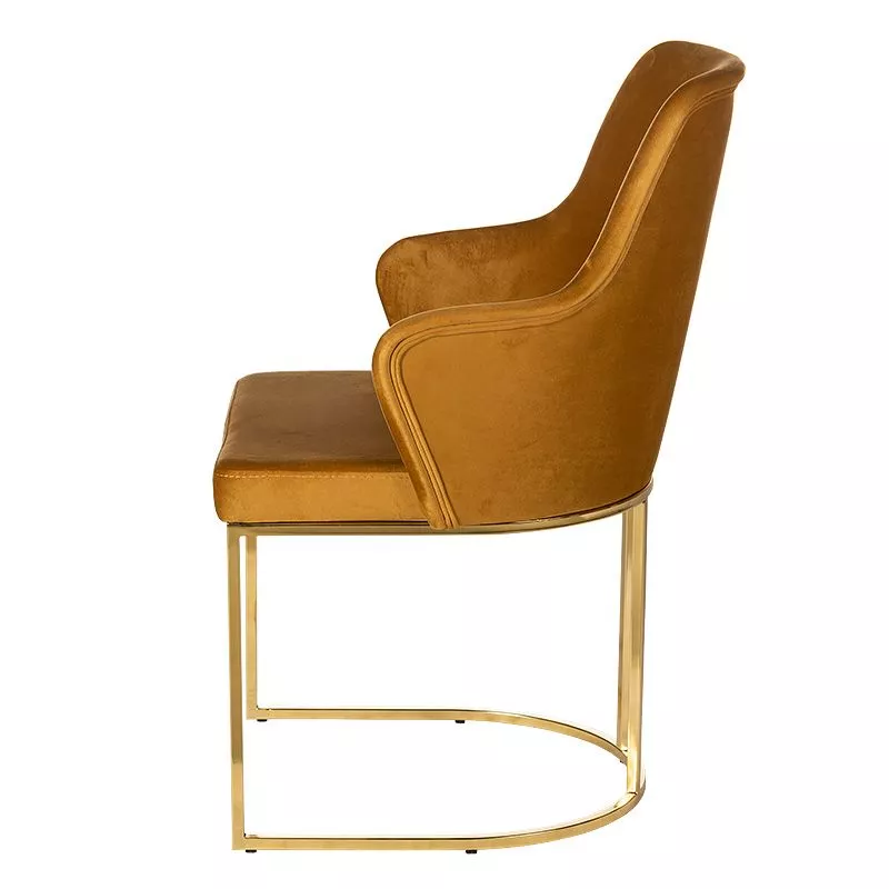 Der berliner Esszimmerstuhl ist die perfekte Mischung aus Komfort und Stil. Die weiche, plüschige Stoffpolsterung hat eine schöne orange Farbe, die jedem Raum einen Hauch von Helligkeit verleiht. Der stabile Holzrahmen und die goldenen Metallbeine vermitteln ein Gefühl von Luxus und Eleganz, während die Armlehne dafür sorgt, dass Sie stundenlang bequem in diesem Stuhl sitzen. Egal, ob Sie nach einem neuen Möbelstück für Ihr Heimbüro suchen oder Ihrem Esszimmer etwas Persönlichkeit verleihen möchten, dieser Berliner Stuhl ist die perfekte Wahl.