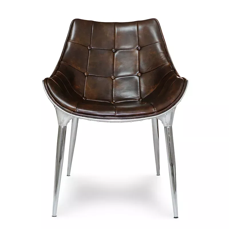 Der Porter Esszimmerstuhl ist ein wunderschön gestaltetes modernes Möbelstück. Es verfügt über schlanke, silberne Beine und einen luxuriösen, dunkelbraunen Sitz. Die quadratischen Nähte an Sitz und Rückenlehne verleihen dem Design einen Hauch von Eleganz, während das Gesamtbild von Raffinesse und Stil geprägt ist. Der Porter Esszimmerstuhl wird aus feinsten Materialien handgefertigt und sein Design im Flugzeugstil macht ihn zu einem echten Unikat. Egal, ob Sie nach einem neuen Stuhl für Ihr Zuhause oder Ihr Büro suchen, der Porter Esszimmerstuhl wird mit Sicherheit einen bleibenden Eindruck hinterlassen.